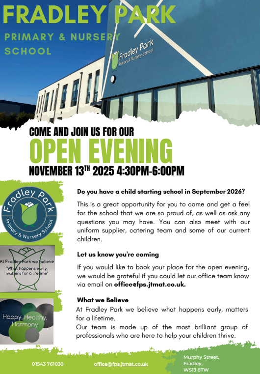 Fradley Park is made up of the most brilliant group of professionals and is a place where children and adults are excited to learn. We are here to help support tomorrow’s citizens and help our children discover themselves and their place in the world. We are proud to be a part of the JTMAT and share the belief ‘in the power of education to improve lives – and the world.’